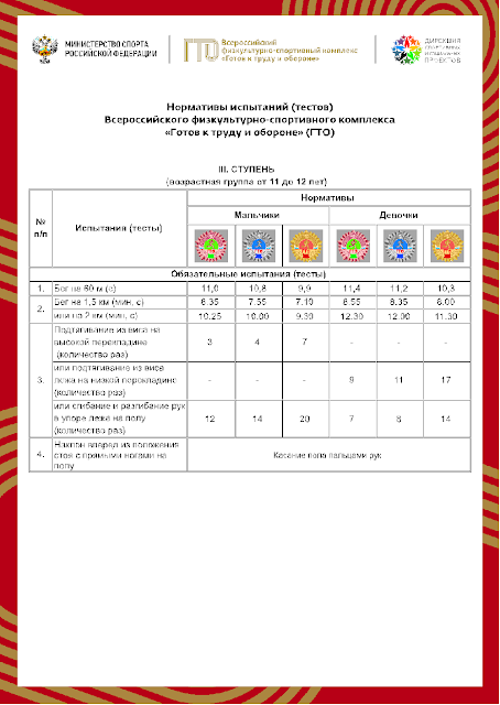 3 ступень – Нормативы ГТО для школьников 11-12 лет